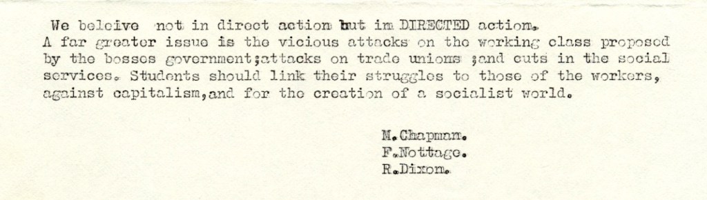 - ‘Why we should stay out of NUS’ (Socialist Society leaflet, November 1970).